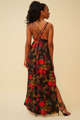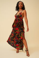 POPPY FIELDS FOREVER FLORAL MAXI DRESS - BLACK/MULTI